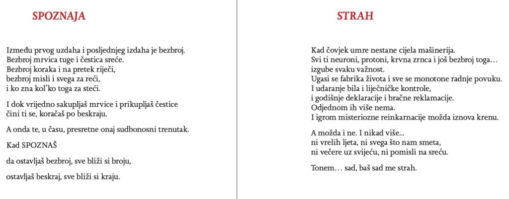 In my poems and short stories I am concerned with topics that bother all of us, such as the meaning and ephemerality of life, the awareness or hope that we are on the right path, the topics related to love and many other things. At the moment I am working on my next project, poetry and prose which I am going to set to music. The book saw the light of day in 2018.